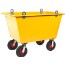 Stor avfallsvagn tillverkad i kraftig plåt. Utrustad med lyftöglor för säkra lyft, CE märkta. Pulverlackerad. Dubbla handtag. 2 st fasta och 2 st länkhjul 260 mm luftgummihjul. Kan också användas med 3 st monterade hjul.
