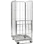 Rullcontainer med 4 nätsidor. 1 halvhängd grind på ena kortsidan. Elförzinkad. Enkel montering utan verktyg. 2 st fasta och 2 st länkhjul 100 mm av nylon. Levereras omonterad.