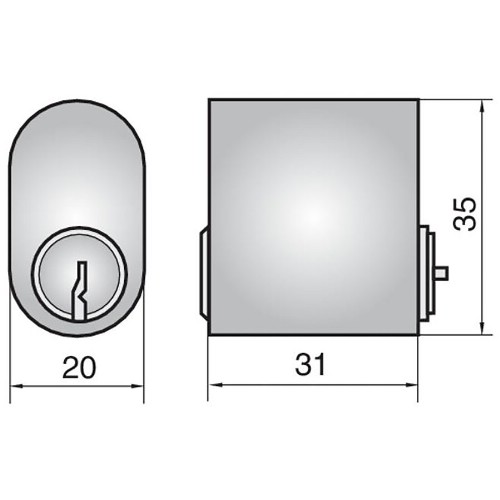 Oval enkelcylinder avsedd för dörrens utsida. Ej kopieringsskyddad nyckel. Uppfyller fordringar enligt SSEN1303, klass 3, för invändig låsning av fönster/fönsterdörrar.