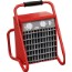 Portabel värmefläkt 230 V, 1-fas. Max effekt på 2 kW. Inbyggd termostat reglerar både fläkt och värme, alternativt endast värme. Valet görs med funktionsväljaren. Termostaten har inställningsområde +5°C till +35°C. Kompakt och robust design i rödlackerad stålplåt. Det kraftiga rörstativet fungerar som ett väl balanserat och ergonomiskt bärhandtag. Utformningen skyddar mot slag och vibrationer för att kunna användas i tuffare miljöer. Levereras med 1,8 m kabel med stickpropp för anslutning till jordat uttag 230 V.
