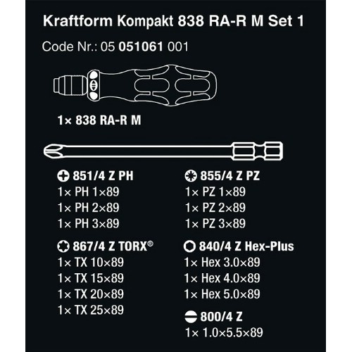 Bitsspärrskruvmejselsats WERA Kraftform Kompakt 838 RA-R M Set 1