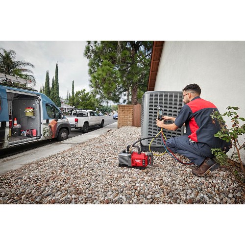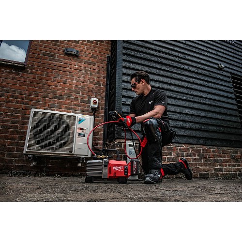 Batteridriven vakuumpump 18 V Li-Ion med kolborstfri motor. Kompatibel med samtliga A1-, A2L- och A2-klassade köldmedier. Med upp till 90 min drifttid per M18 High Output 8,0 Ah-batteri. 1/2"-, 3/8"- och 1/4"-anslutning samt en 5/16"-adapter. Automatisk kulventil för att isolera systemet när pumpen är avstängd. Backventil håller vakuumet för att undvika dubbelarbete vid batteribyte. Indikerar lågt batteri med både ljud och ljus. Gasventil reducerar antal oljebyten. Stor oljeanslutning för att ta bort behovet av tratt. Vinklad oljeplugg underlättar oljebyten. Redlink Plus-elektronik med avancerad kommunikation mellan batteri och verktyg. Flexibelt batterisystem, passar samtliga Milwaukee M18-batterier.