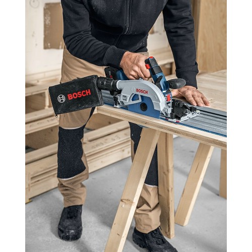 Effektiv cirkelsåg 18 V Li-Ion med 165 mm sågklinga, optimerad för sladdlöst precisionsarbete. Snabb avverkning och lång livslängd tack vare kraftfull, borstlös motor. Max sågdjup på 57 mm. Klarar vinklade snitt på upp till 50°. Försedd med Stop Control-funktion, vid aktivering identifierar maskinen automatiskt när en kapning tar slut och stängs av. Tre olika varvtalsnivåer samt energibesparande Eco-läge som ökar batteritiden med upp till 10%. KickBack Control och överhettningsskydd. Sågbladets flexibla design medger väggnära kapning. Vridbar click & clean-adapter för anslutning till dammsugare. LED-belysning. För maximal effekt, använd ProCore-batteri (minst 5,5 Ah). Kan användas tillsammans med Bosch styrskena FSN och kapskena FSN X, passar även styrskenor från Mafell, Festool och Makita. Kompatibel med alla Bosch Professional 18 V-batterier och laddare.