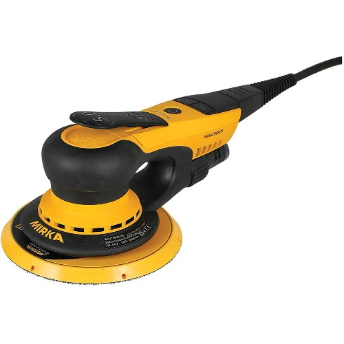 Mirka Deros II 5650 är en 125 mm / 150 mm elektrisk oscillerande slipmaskin utvecklad för effektiv och dammfri slipning av alla typer av ytor. Levereras i en högkvalitativ plastlåda, tillsammans med en 2-i-1 lösning för underlagsplatta. Mirka Deros II 5650 har alltså både en 150 mm och en 125 mm underlagsplatta och 5,0 mm oscillering. Oscilleringen på 5 mm är den storlek på oscillation som används mest, och uppnår en bra balans mellan avverkning och ytfinish och lämpar sig för allmän slipning. Effektiv, kompakt och lättanvänd elektrisk slipmaskin. Lågprofilerad, lätt och välkänd för sin ledande ergonomi och balanserade känsla, med användarkomfort av hög standard. Kan användas under långa perioder utan trötthet tack vare dess låga ljudnivå och låga vibrationsvärden. Den nya designen gör det ännu enklare för användaren att justera sliphastigheten: förutom den lättmanövrerade spaken för att justera hastigheten har den även tydliga LED-indikatorer på hastighetsreglaget samt en separat på/av-knapp. Tack vare den högeffektiva borstlösa motorn bibehåller den en jämn hastighet och klarar svåra jobb och krävande applikationer utan ansträngning. Som en del av Mirkas dammfria sliplösning möjliggör den en effektiv dammfri slipning, och Bluetooth-anslutning möjliggör integration med myMirka-appen för vibrationsövervakning.