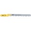 Sticksågblad av kolstål med skarp och aggressiv tandgeometri. För extremt snabba snitt i trä. Bladet är anpassat för kurvsågning. Passar alla sticksågar med T-skaft.